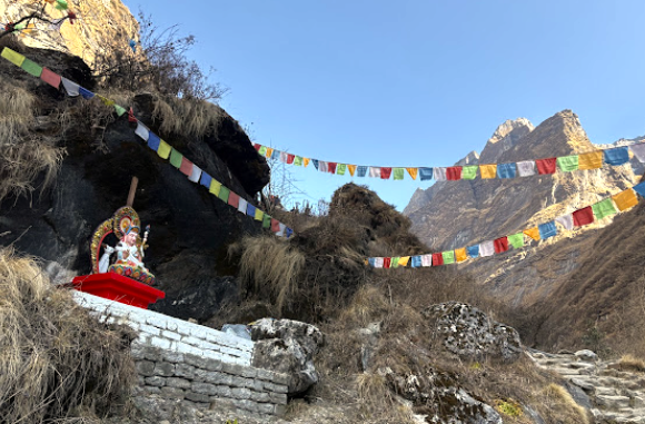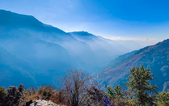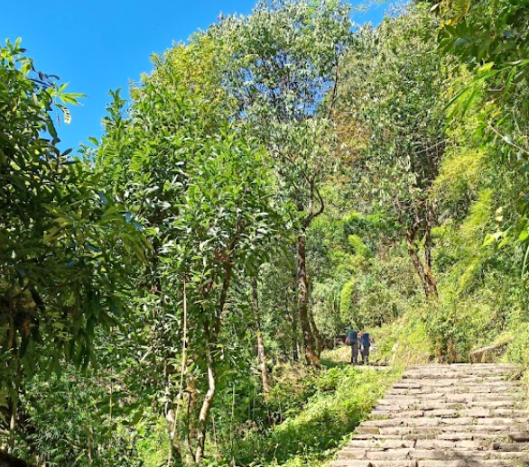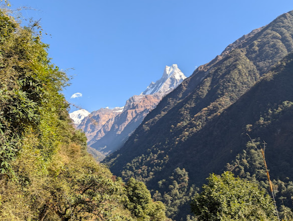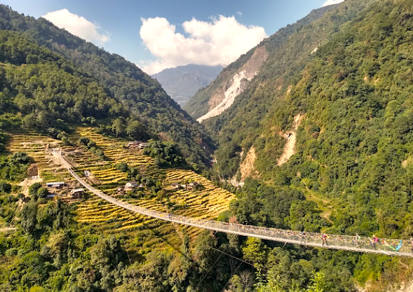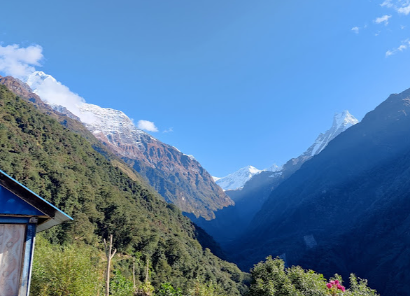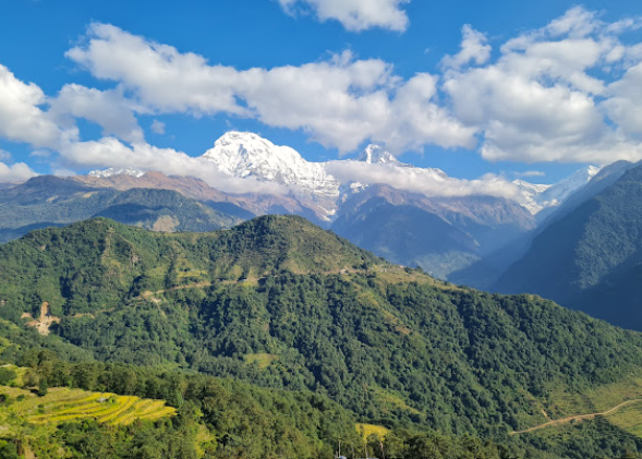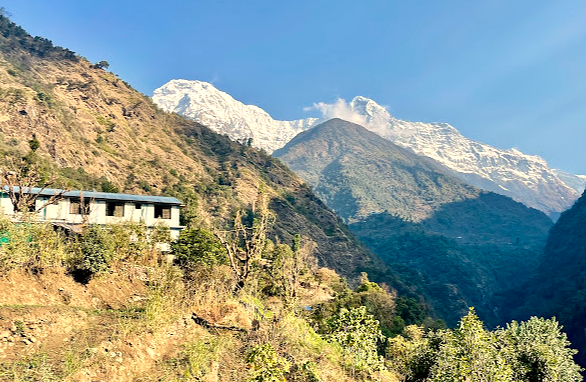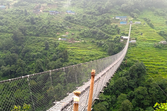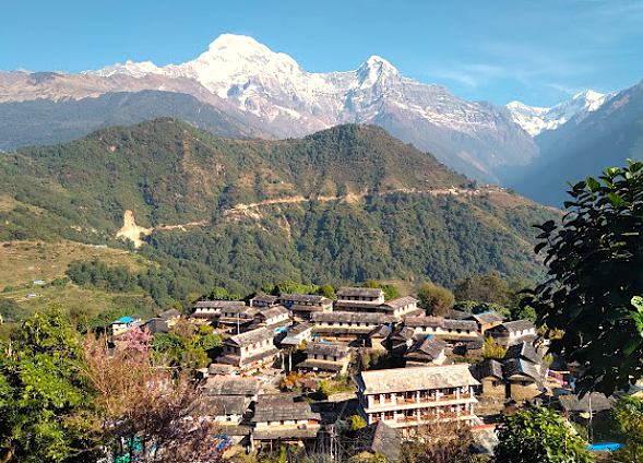 Traslado cedinho para o voo a Pokhara. Motorista estará aguardando com uma placa com o nome de vocês para aprox. 2h de carro ao vilarejo Kimche (incluído no mapa acima aqui). Então aprox. 2km subindo até Ghandruk. Caminho de pedra (calçamento de pedra tradicional dessa região). Acredito que levarão entorno de 1h de caminhada. Aproveitem