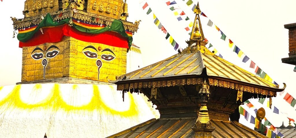 Começaremos nossas visitas com uma pequena caminhada na região da segunda maior estupa do vale, Swayambunath (tradução: auto surgida). Diz a lenda que o morro onde está a estupa surgiu no local onde o bodhisatva Manjushri, o bodhisattva da sabedoria, pegou uma flor de lótus após esvaziar o lago onde é hoje o Vale de Kathmandu. Com o tempo permitindo, teremos uma vista de toda cidade. Faremos nossas koras em volta da estupa e conheceremos seus pequenos monastérios.